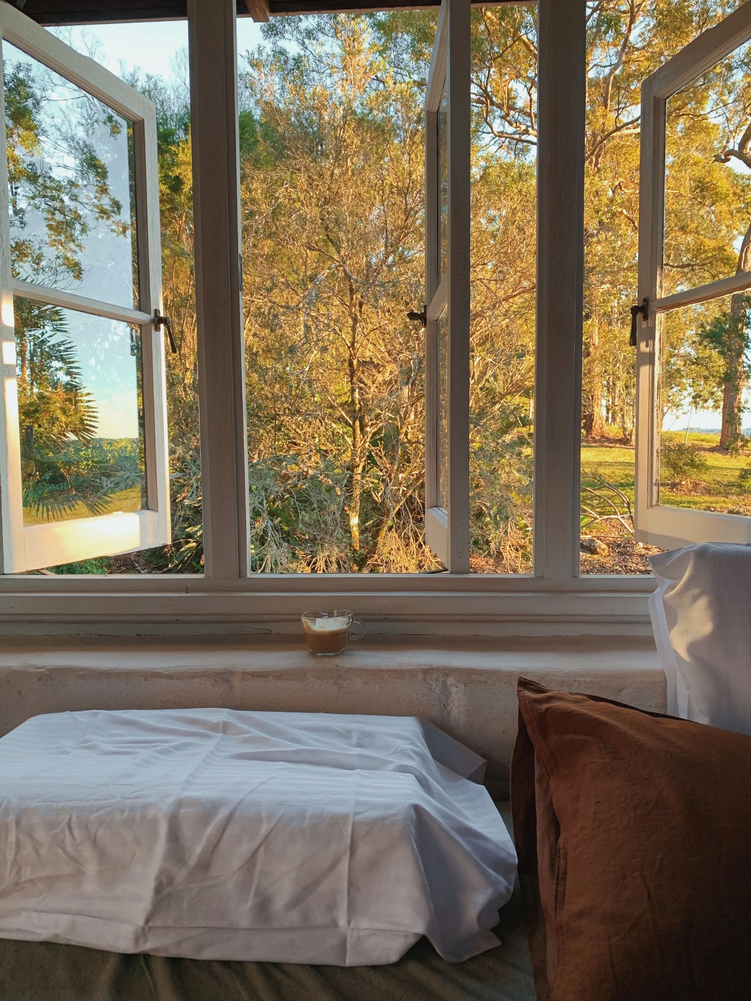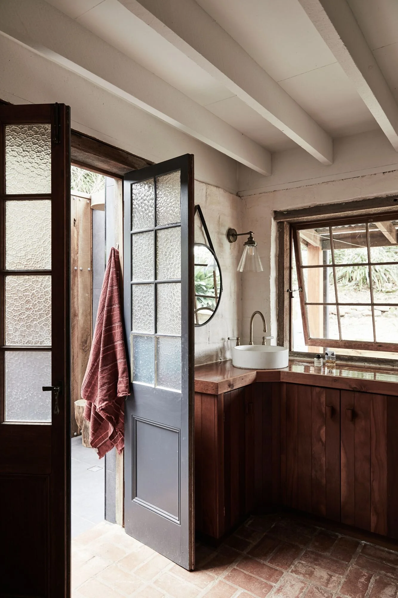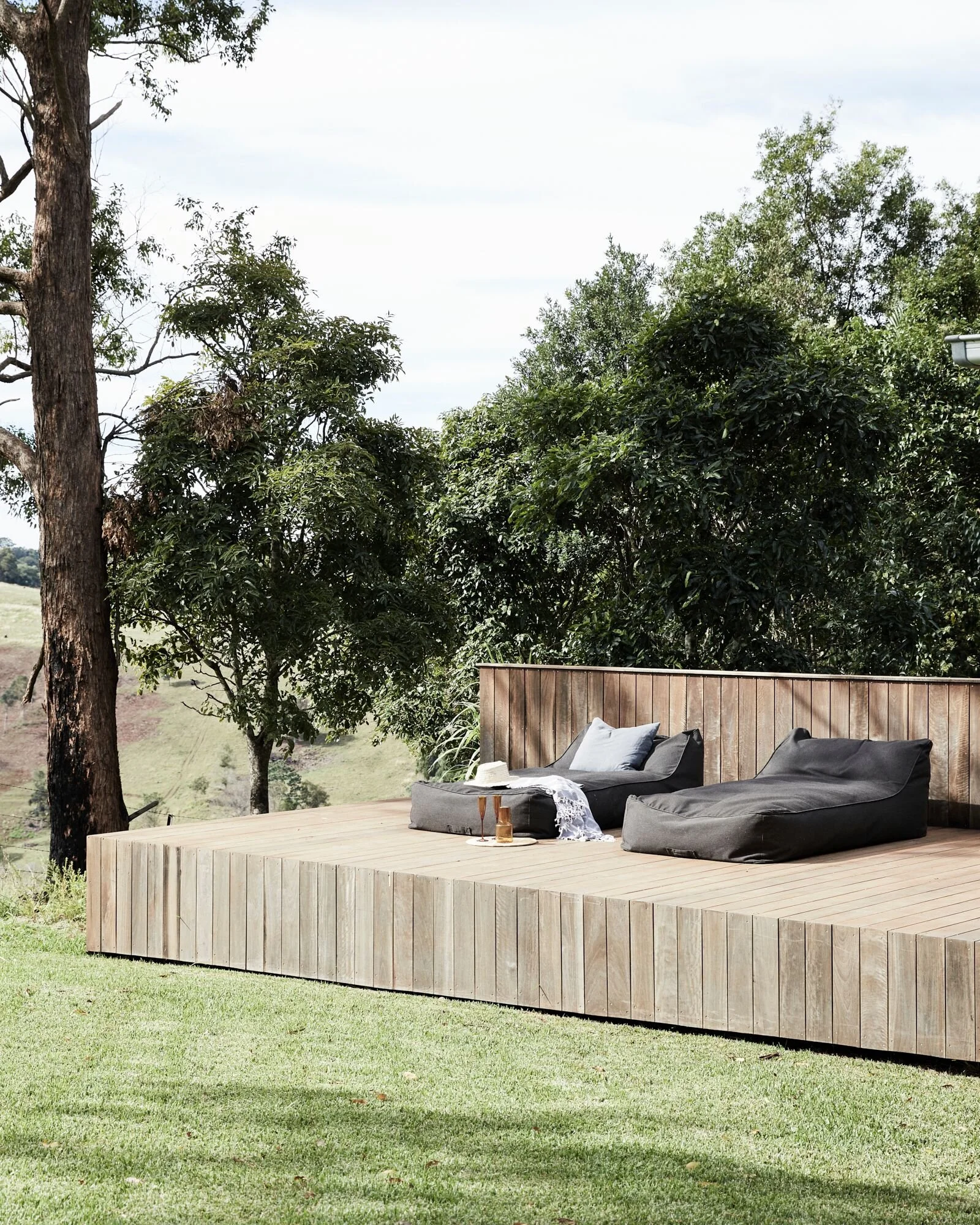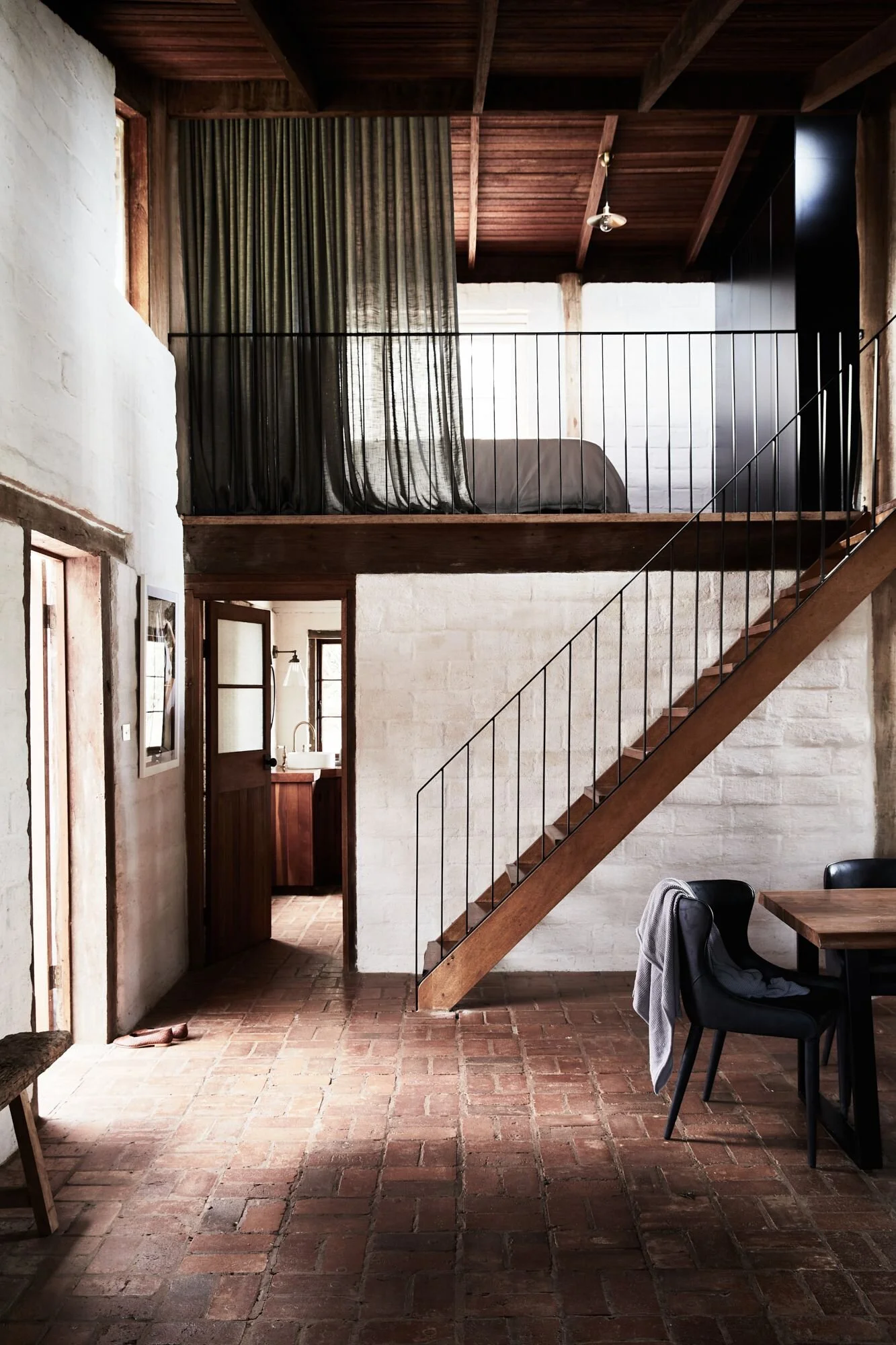 This home located in Byron Bay a Spanish style countryside casa, stone and brickwork throughout, the spaces are open planned and warm, there’s beautiful filtered light throughout and a gorgeous lemon tree at the entryway. It’s situated on a large property and is multi-zoned; outdoor entertaining, dining area and fire pit.
