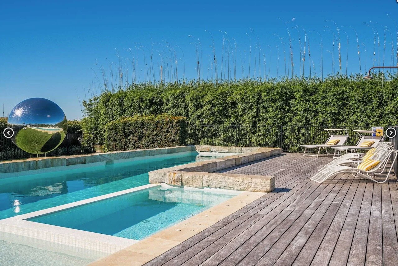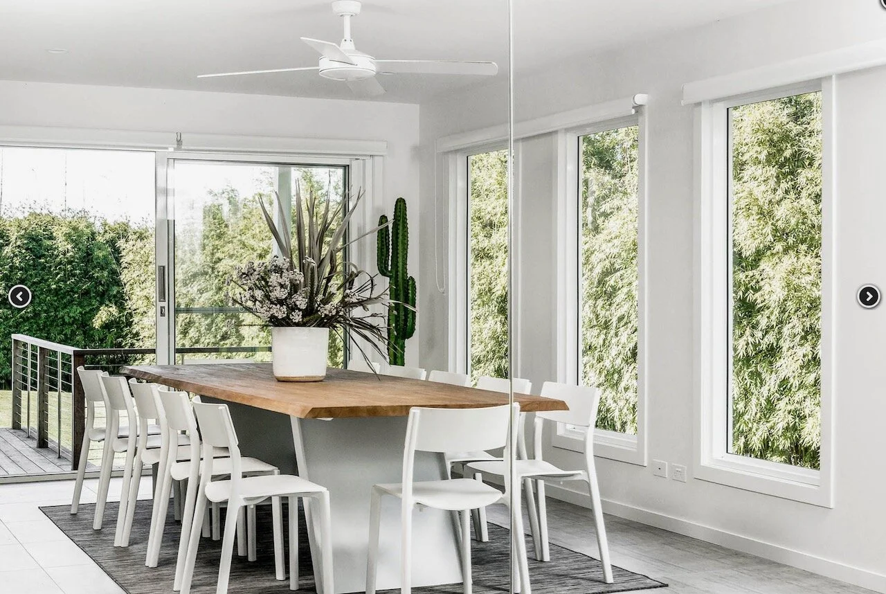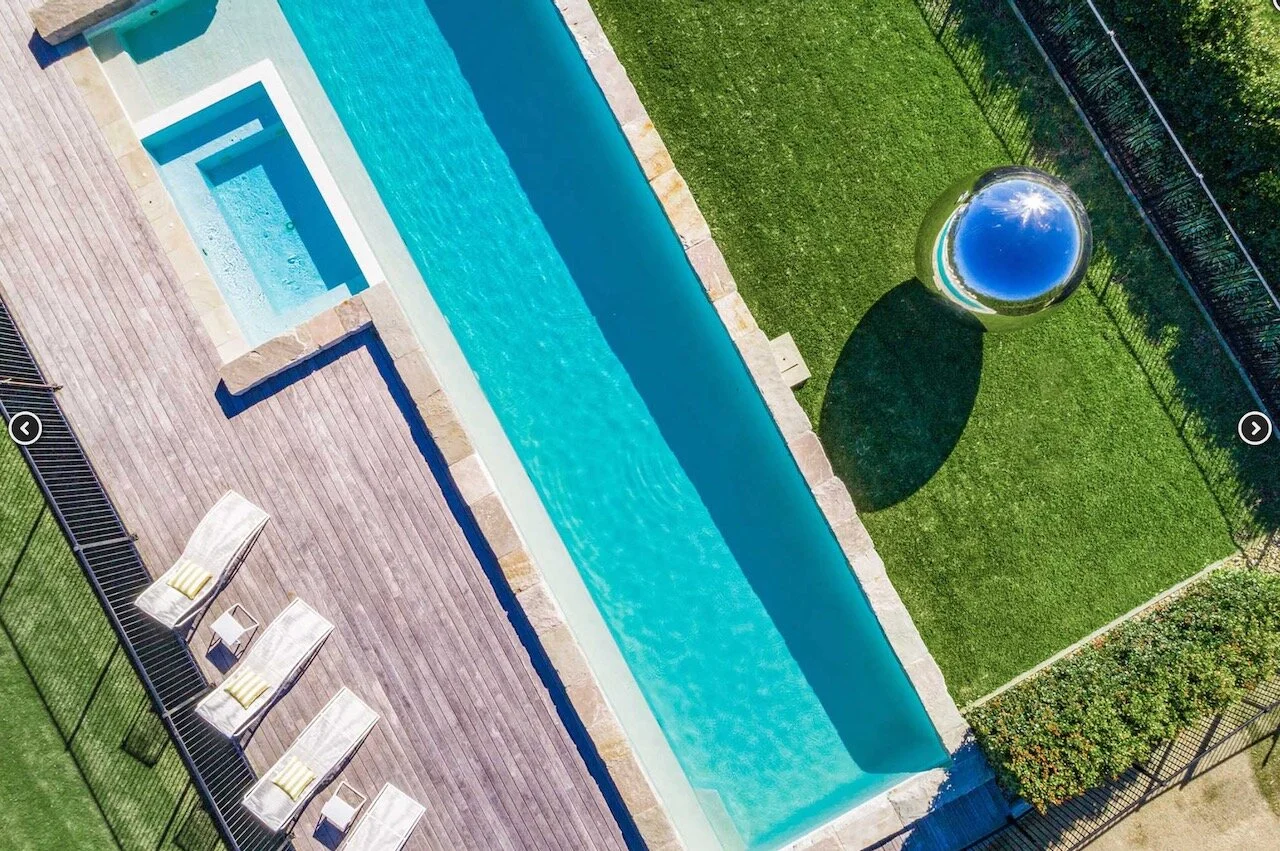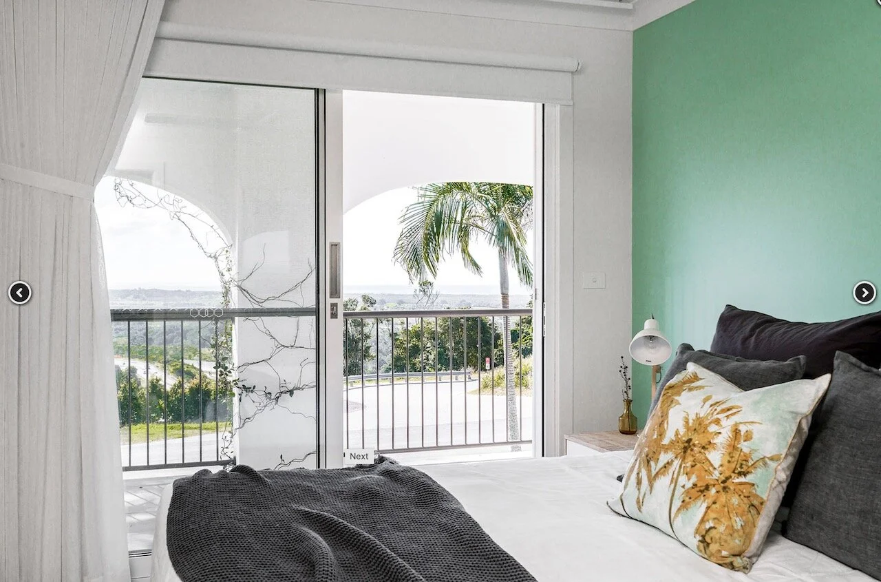 Sundays is a proud contemporary Mediterranean styled farmhouse. It is positioned above Byron bay and has spectacular views of the below town and ocean to the front of the house and hinterland behind it. The huge pool is the statement of the property. Surrounding the home are arches. The space is bright and beach focused